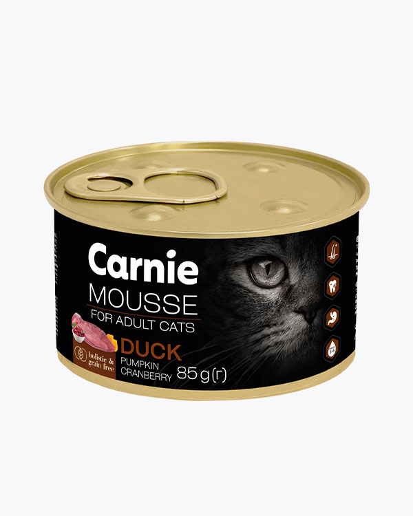 Вологий корм Carnie для дорослих котів, м'ясний мус з качкою, гарбузом, журавлиною та желе, 85 г