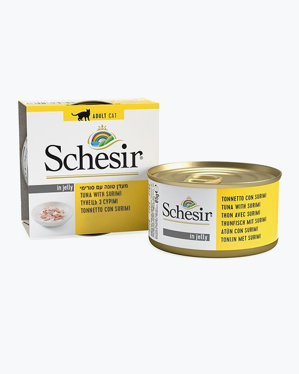 Schesir Tuna with Shrimps ШЕЗІР ТУНЕЦЬ З КРЕВЕТКАМИ в желе натуральні консерви для котів, вологий корм, банка 85г, 0.085 кг