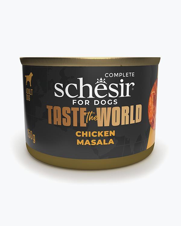 Schesir Спробуйте світ Чікен Масала ШЕЗІР МАСАЛА З КУРКОЮ у бульйоні натуральні консерви для собак, вологий корм, банка 150г