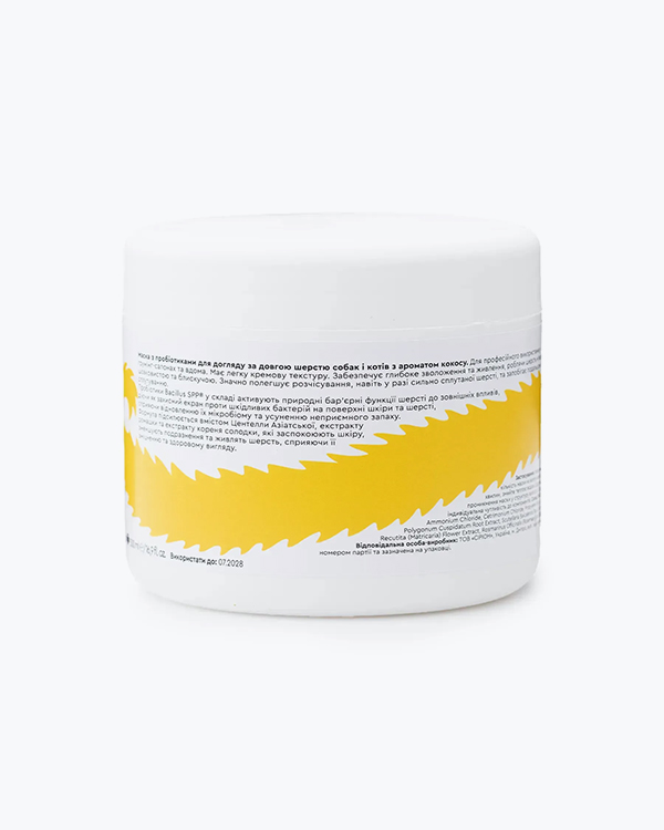 Маска для шерсті тварин (собак та котів) з пробіотиками. Для професійного використання у грумінг-салонах та вдома.